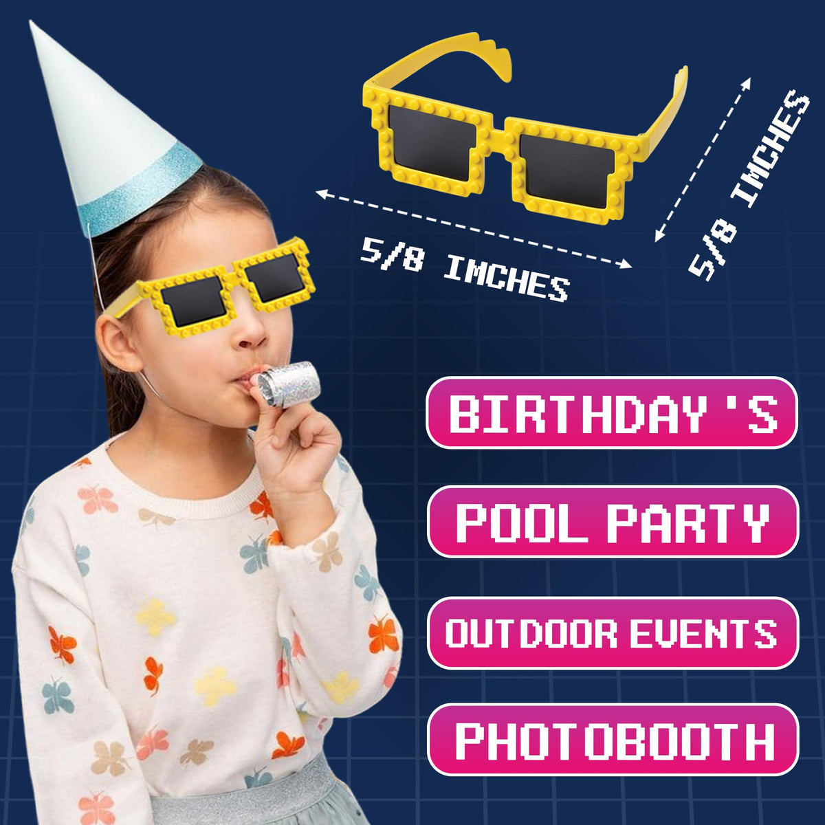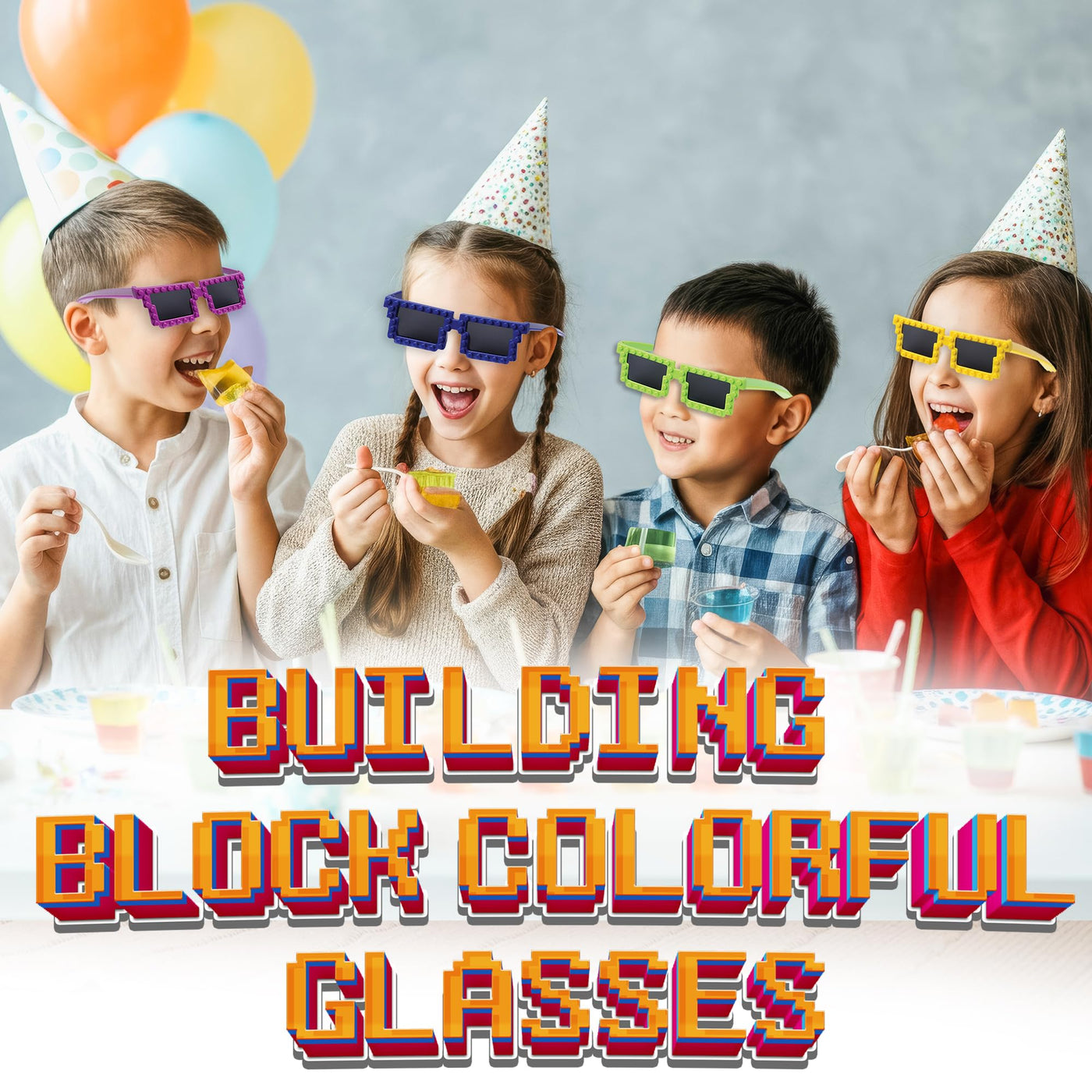 Bedwina Building Blocks Glasses - Pack of 6 - Block Mania Building Block Glasses with Extra Bricks for Carnival Supplies, Stocking Stuffers and Birthday Party Favors for Kids