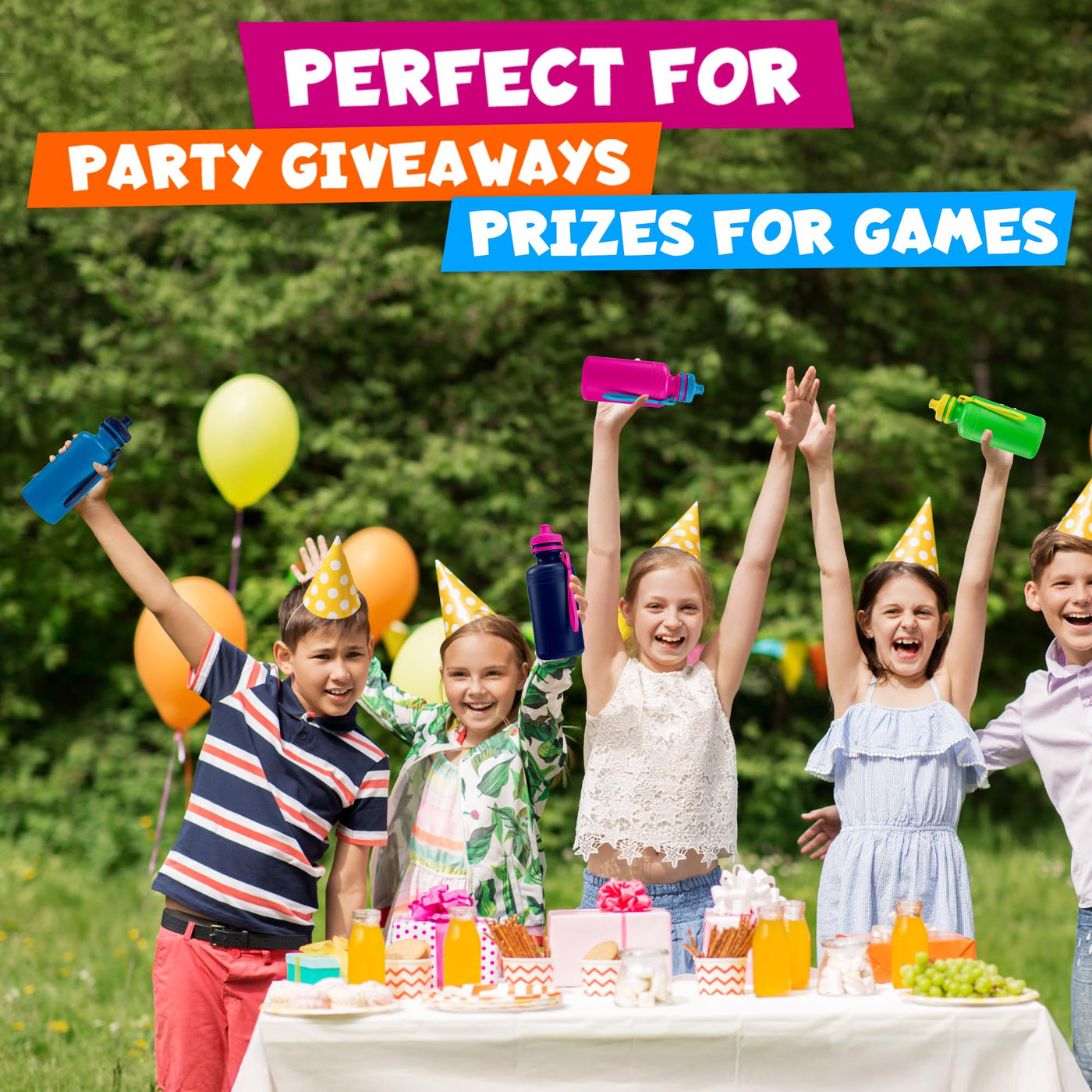 Bedwina Bulk Water Bottles For Kids - (Bulk Pack of 72) 18 Oz - 7.5 Inch BPA-Free Plastic Water Bottles w/Pop-up Tops for Summer, Reusable Water Bottles Bulk for School, Sports Birthday Party Favors - 72-Pcs