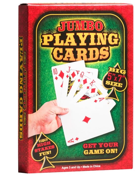 • EASY TO SEE NUMBERS AND FACE CARDS: With easy-to-read numbers and face cards, our jumbo-sized playing cards are perfect for players of all ages, including seniors. Get ready to experience the excitement of a big Royal Flush and enjoy the ease of playing with these fun and practical cards.