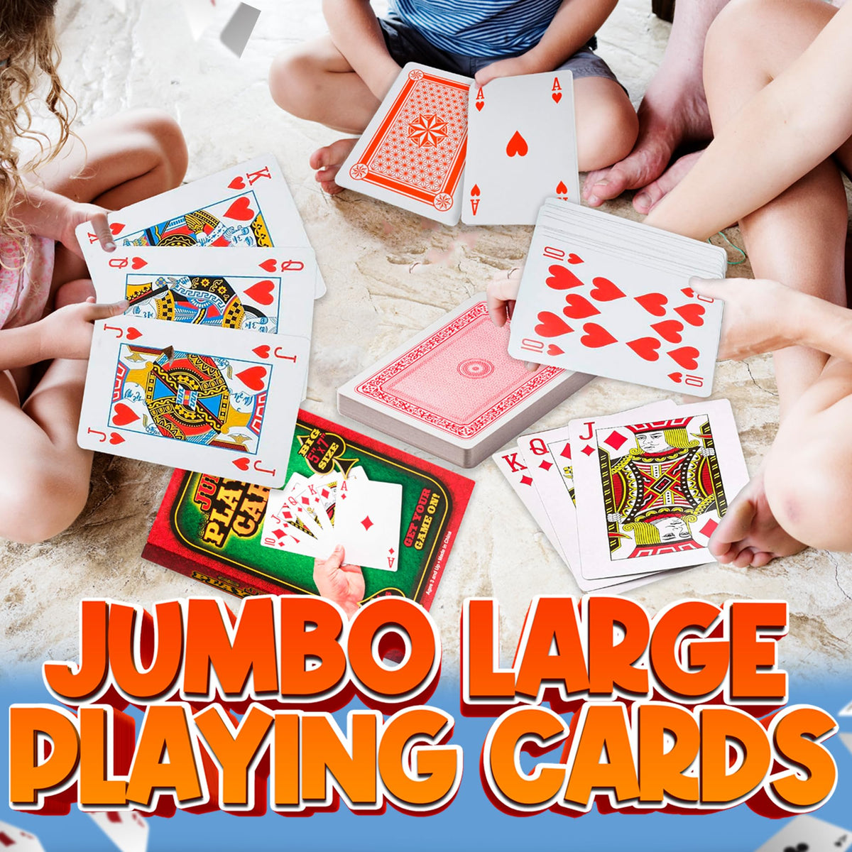 • SUPERSIZED FUN: Our giant playing cards are sure to amuse and delight audience members of all ages! Our giant playing cards are perfect for playing Go Fish, Rummy, Poker, Texas Hold'em, and much more, which means that you'll have the time of your life. Makes a great gift for card players, too!