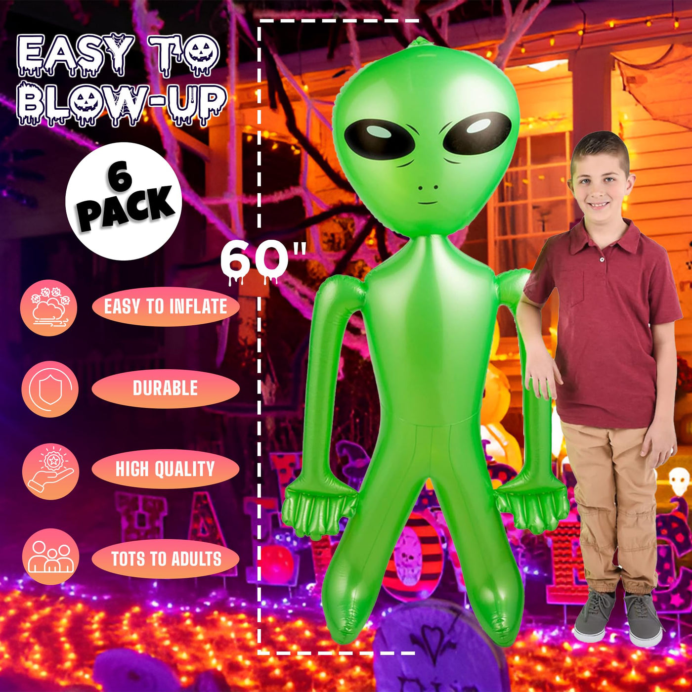 JUMBO GIANT SIZE: Each alien measures 5 feet feet tall when fully inflated, that's bigger than any child and even adults. good for alien birthday decorations & alien decorations halloween (Please Note: Aliens will arrive deflected)