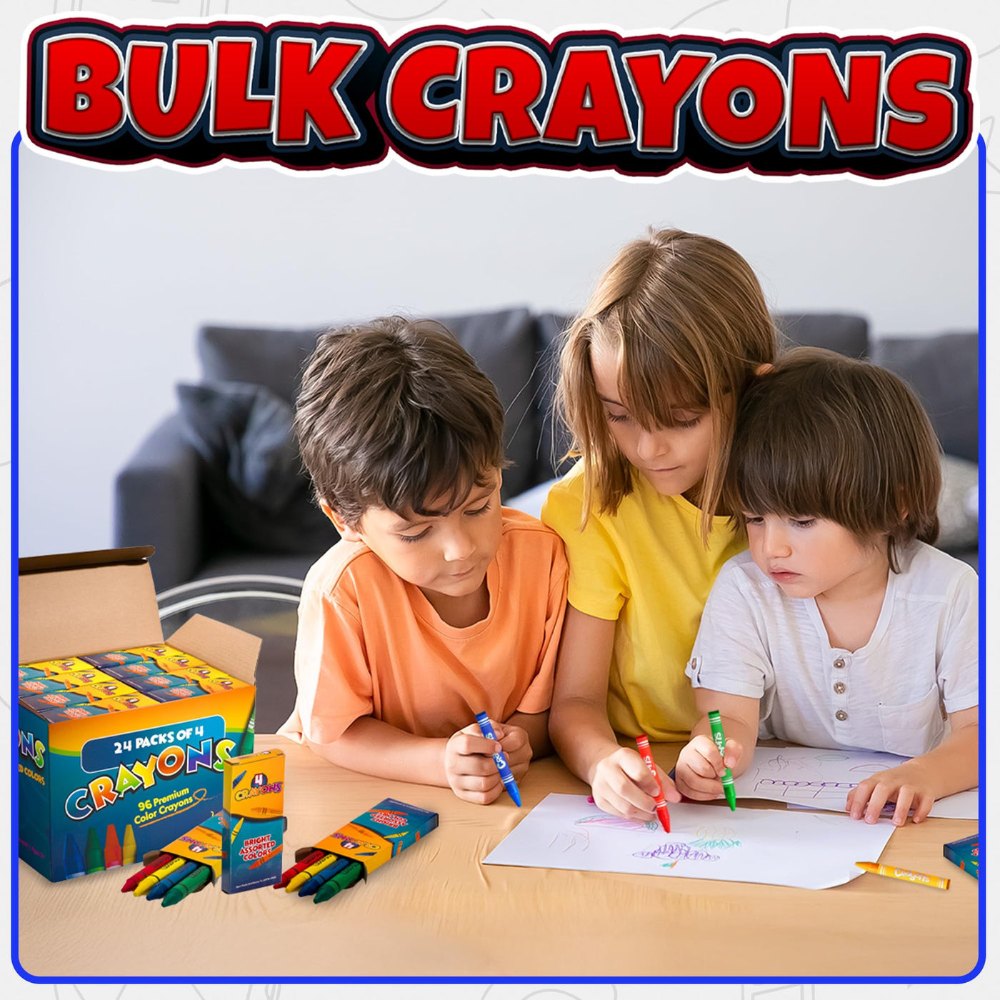 The Bedwina 24 Bulk Pack of Crayons are perfect for party favors, goody bags, restaurant supplies, schools, and so much more. These premium crayons for kids and toddlers are essential for any arts and crafts project. Every order includes a gross, and that means 24 packs individual Packs of 4 bright colors in every order! What that means is you'll have the perfect party favor gift, or you can keep children diners busy coloring in all of the kid's menus at your restaurant!