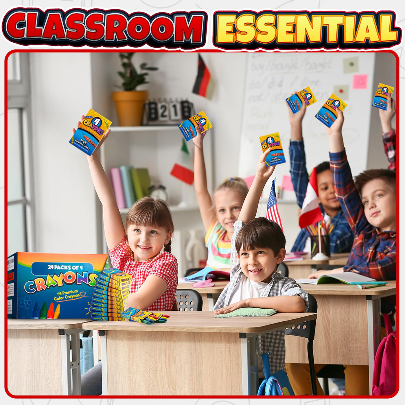 These are everything you'll want in premium crayons! It's easy to see why kids love it when it comes with 24 packs of 4 Red, Yellow, Green & Blue Crayons and boxes to keep them in.