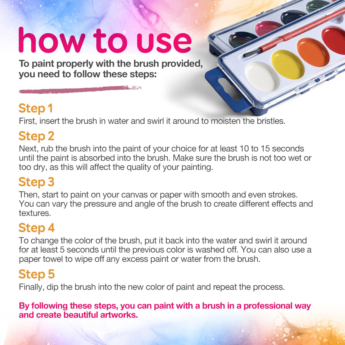 - Each Set Comes with 8 Watercolor Paints, Palette Tray and Painting Brush