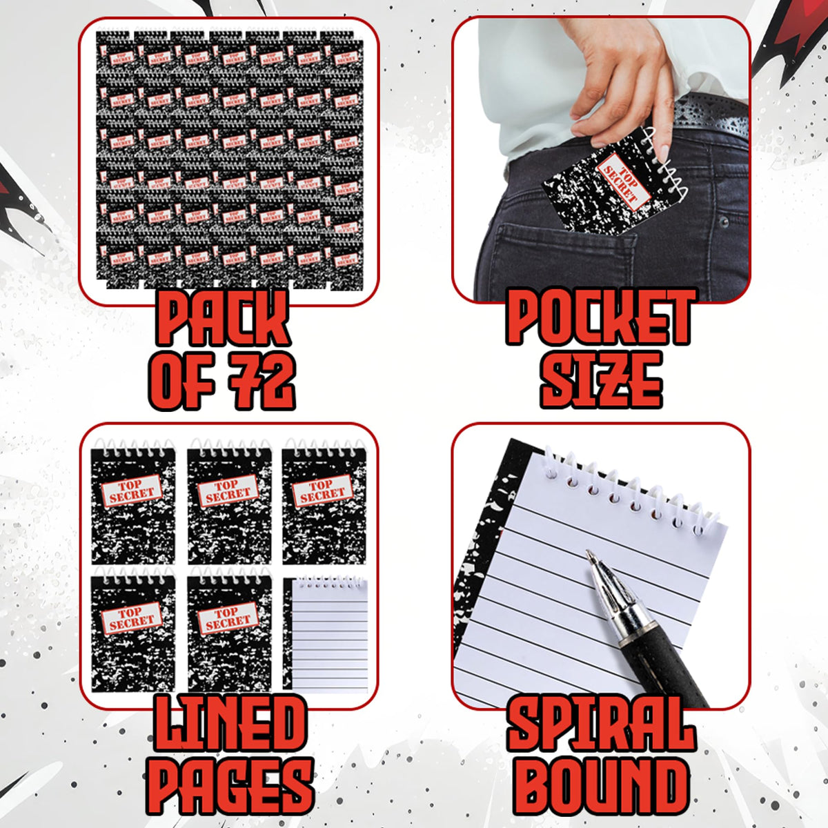 Bedwina Top Secret Mini Notepads for Kids Party Favors - (Pack of 72)