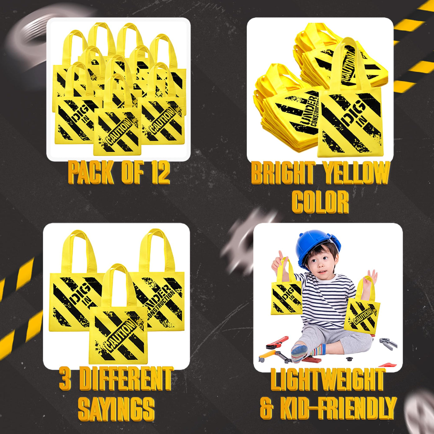 Construction Birthday Party Supplies 12 Under Construction Party Decorations Themed Mini Non-Woven Canvas Tote Gift Bags with Handles Construction Party Bags Supplies for Kids and Goodie Bags for Boys