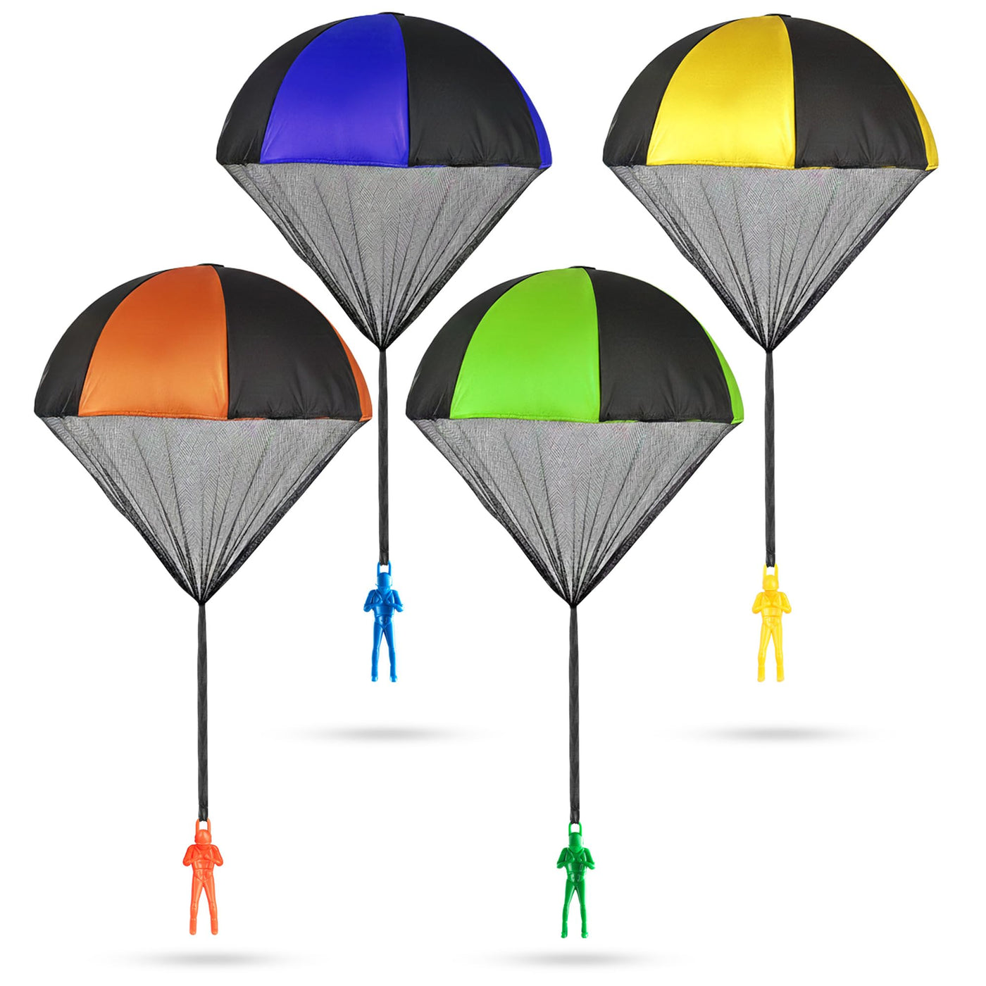• PACK OF 4 HERO PARACHUTE TOYS: Take playtime to new heights with this 4-pack of parachute men toys featuring Police, Army, Firefighter, and EMT figures. Each comes with its own tangle-free parachute for easy toss-and-catch fun. Kids love racing them, sharing them, and recreating rescue missions indoors or outdoors.