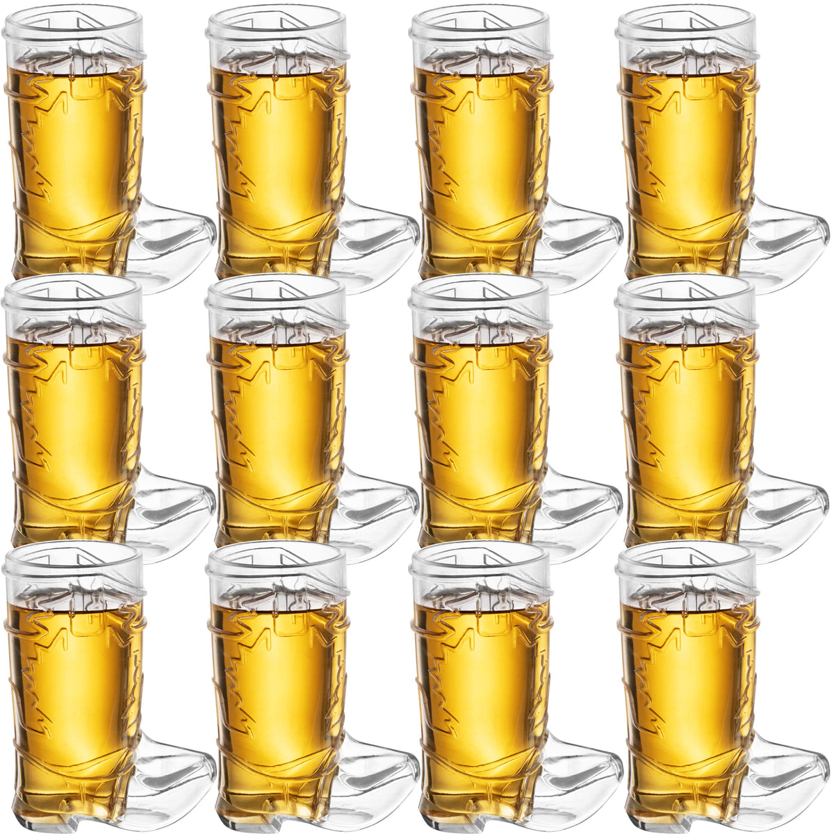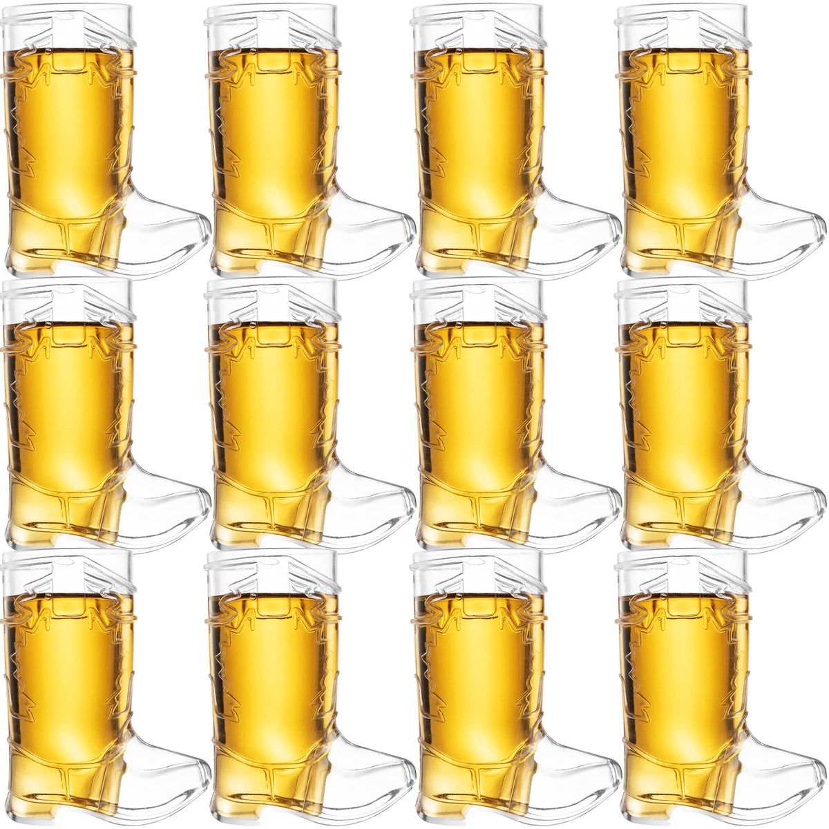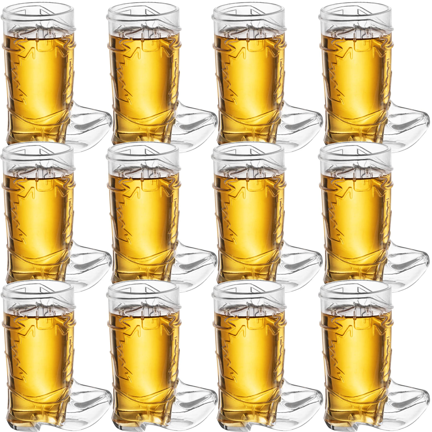 • PACK OF 12 - 1 OZ, COWBOY BOOT SHOT GLASSES: Each bulk order includes (12) Mini Cowboy Boot Shot Glasses. These clear shot glasses measure 2.2 Inches Tall, are disposable or reusable, and holds (1) fluid ounce of liquid. Perfect to fill with your favorite alcohol, liquor, drinks, beverages, and mini desserts to serve to your guests