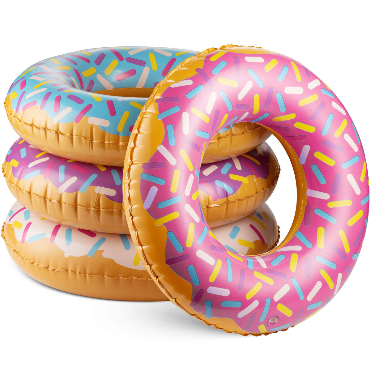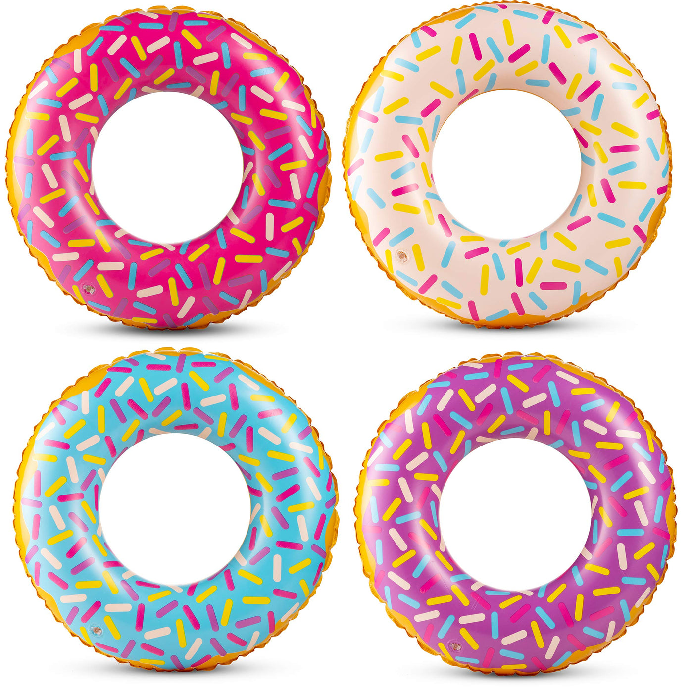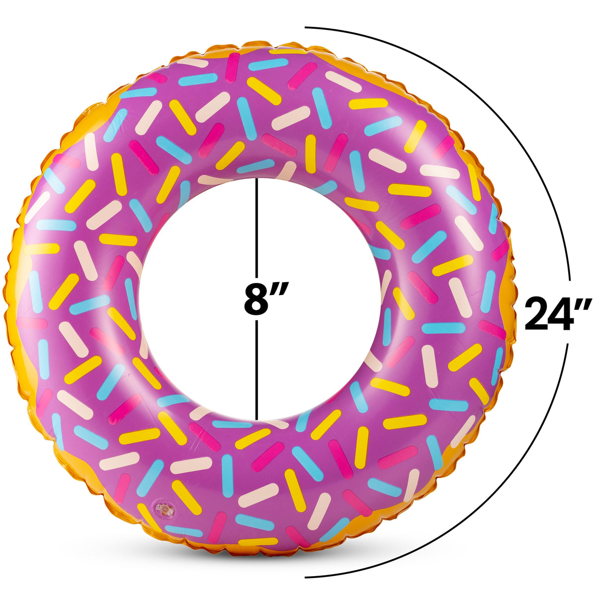 Inflatable Donuts - (Pack of 4) 24 Inch Donut Pool Float for Kids Pool Tube, Assorted Swim Rings with Sprinkles for Pool Floaties, Party Decorations, Giveaways and Kids Party Favors