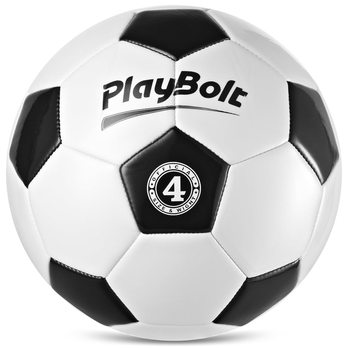 PlayBolt Soccer Ball Size 4 - Official Size Soccer Balls with Pump in Classic Black and White for Kids Youth & Adult Sports, Indoor & Outdoor (Pack of 1)