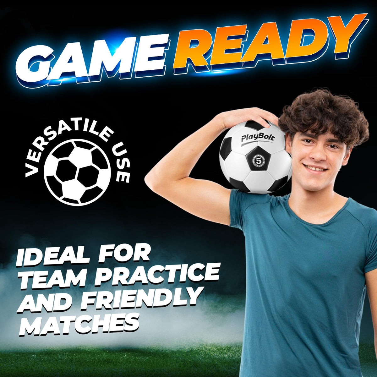 PlayBolt Soccer Ball Size 5 - Official Size Soccer Balls with Pump in Classic Black and White for Kids Youth & Adult Sports, Indoor & Outdoor (Pack of 4)